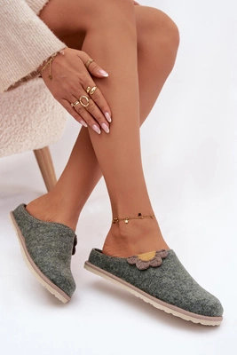 Kapcie Damskie Filcowe Inblu z Ozdobnym Kwiatkiem – Komfort i Styl W Domu CS000043 Zielone