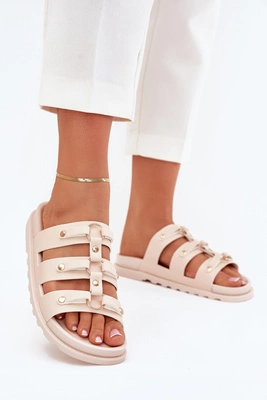 Klapki Damskie Z Paskami Jasnobeżowe Pasiriela