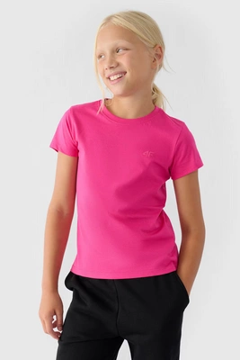 Dziewczęcy T-shirt Gładki Bawełniany Fuksja 4F 4FJWMM00TTSHF1658-55S