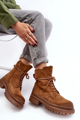 Damskie Botki Trapery Na Grubej Podeszwie Camel Narelona