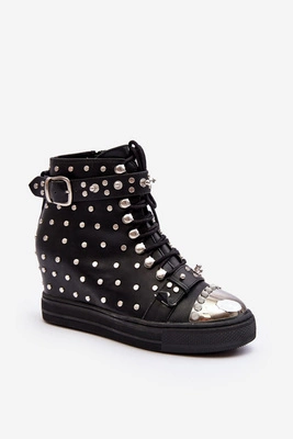 Botki Damskie Zdobione Dżetami Na Koturnie Lu Boo Czarne
