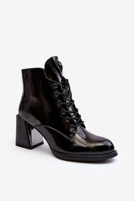 Lakierowane Botki Damskie Na Suwak S.Barski HY93-91 Czarne