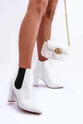 +1Lakierowane Botki Na Słupku Białe Evita