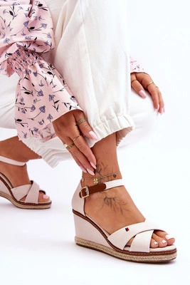 Damskie Sandały Na Koturnie Jasnobeżowe Janet