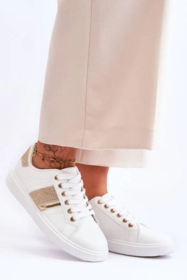 Damskie Sportowe Buty Z Dżetami Biało-Złote Axelle