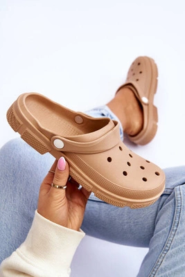Modne Damskie Klapki Na Masywnej Platformie Beżowe Lorette
