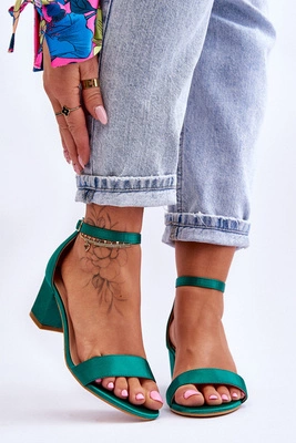 Satynowe Sandały Na Obcasie Zielone Linsy
