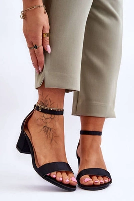 Satynowe Sandały Na Obcasie Czarne Linsy