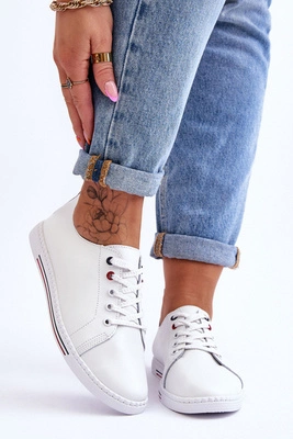 +1Skórzane Ażurowe Buty Sportowe Białe Leonor