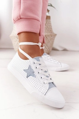 Damskie Skórzane Tenisówki BIG STAR HH274143 Srebrne