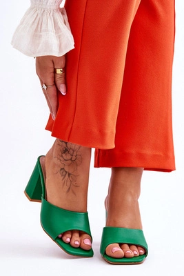 Damskie Skórzane Klasyczne Klapki Zielone Loara