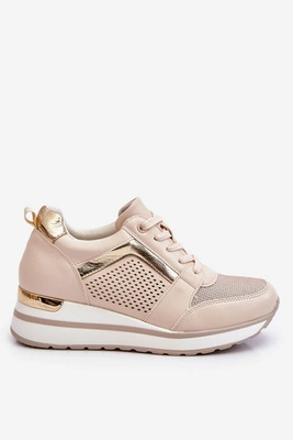 +2Skórzane Buty Sportowe Na Niewysokim Koturnie Beżowe Braylen