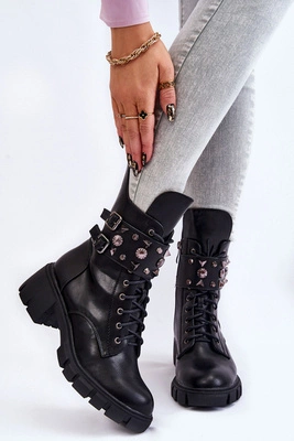 Damskie Sznurowane Botki Trapery Z Ociepleniem Czarne Nomi