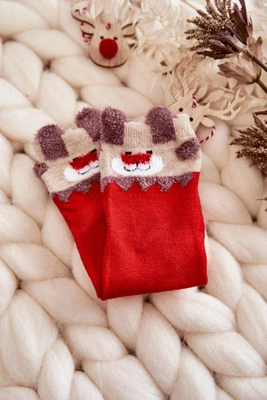 Dziecięce Termoaktywne Świąteczne Skarpety Renifer Czerwone