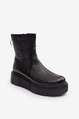 Damskie Skórzane Botki Na Platformie Czarne Lemar Jenefer