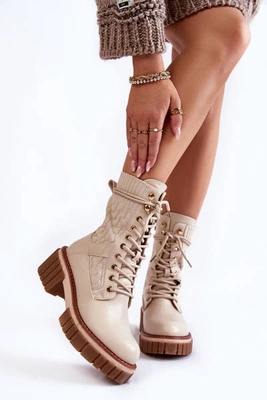 Damskie Wysokie Botki Glany Na Zamek Beżowe Enroe
