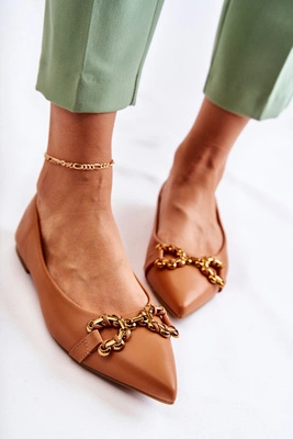 Damskie Skórzane Baleriny W Szpic Z Ozdobą Camel Carlos