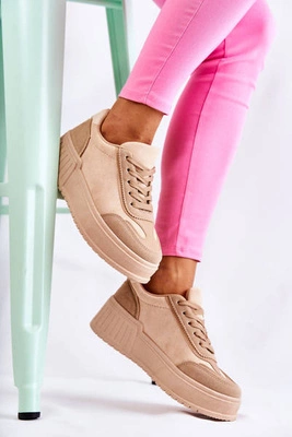 Damskie Zamszowe Buty Sportowe Beżowe Segurro
