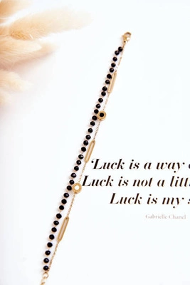 Damska Podwójna Bransoletka Z Koralikami Miś Czarno-Złota