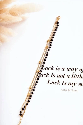 Damska Podwójna Bransoletka Z Koralikami Czarno-Złota Motyl