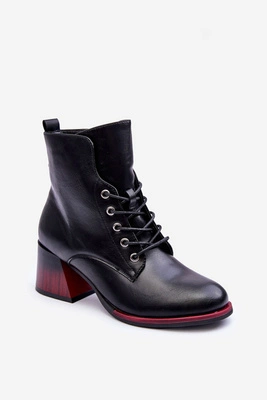 Skórzane Botki Damskie Workery Czarne Tedrick