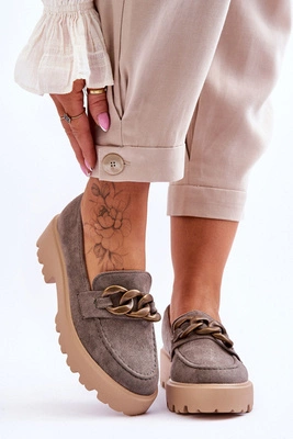 Zamszowe Damskie Mokasyny S.Barski HX52-222 Szare