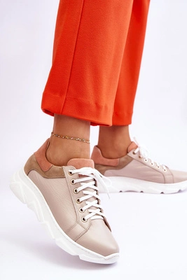 Wygodne Skórzane Buty Sportowe Na Platformie Beżowe Alisane