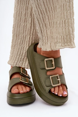 Klapki Damskie Na Platformie Ze Złotymi Klamrami Zielone Zorila