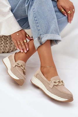 Zamszowe Mokasyny Na Platformie Z Łańcuchem D&A TW552 Beżowe