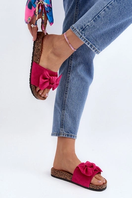 Damskie Klapki Na Korkowej Platformie Z Kokardą Fuksja Tarena
