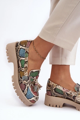+2Damskie Skórzane Półbuty Frędzle Maciejka 05497-45 Multikolor