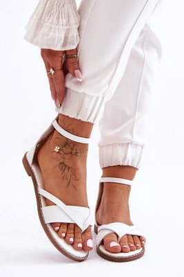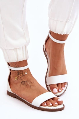 +2Skórzane Płaskie Sandały Na Zamek Białe Millou
