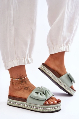 Damskie Klapki Z Materiałową Kokardą Różowe Blossom