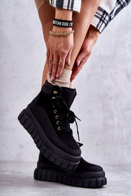 Wygodne Botki Na Platformie Czarne Sanchio