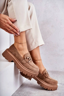 Damskie Półbuty Zamszowe Z Ozdobą Ciemnobeżowe Leeza