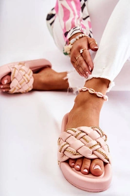 Damskie Skórzane Klapki Z Łańcuszkiem Różowe Soline