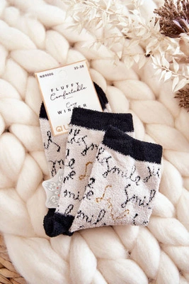 Damskie Bawełniane Skarpetki Miś Beżowe