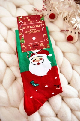 Męskie Świąteczne Bawełniane Skarpetki Z Mikołajem Zielono-Czerwone
