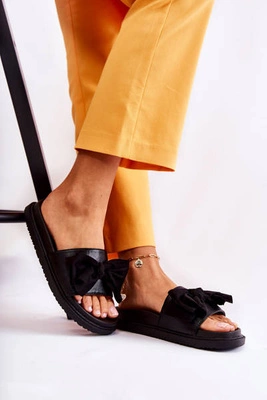 Klasyczne Damskie Klapki Skórzane Z Kokardą Czarne Dessy