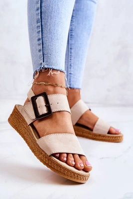 Damskie Zamszowe Sandały Big Star JJ276032 Beżowe