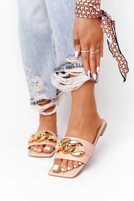 Skórzane Klapki Z Łańcuchem Nude French Kiss