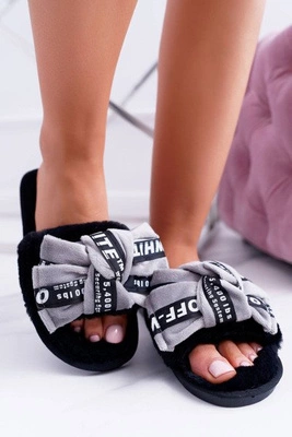 Czarne Damskie Klapki Lu Boo Duże Kokardy Floppy
