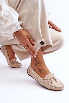 Damskie Zamszowe Mokasyny Beżowe Si Passione