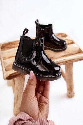 Dziecięce Lakierowane Ocieplane Botki Czarne Porky
