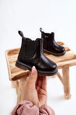 Dziecięce Skórzane Ocieplane Botki Czarne Porky