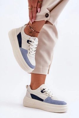 +2Damskie Buty Sportowe Na Masywnej Platformie Biało-Niebieskie Gemma