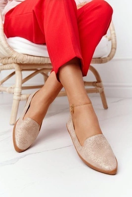 Damskie Skórzane Baleriny Maciejka Metaliczne Beżowe 04100-10