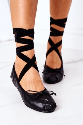 Baleriny Damskie Laura Messi Skórzane Czarne 2157