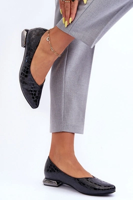 Damskie Skórzane Baleriny W Szpic Z Ozdobą Czarne Carlos