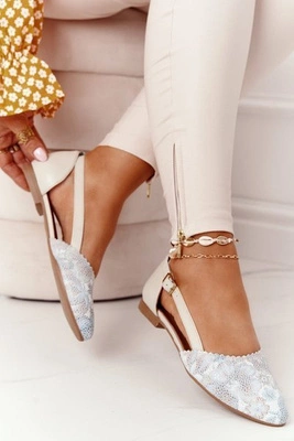 Baleriny Damskie Beżowe Na Pasek W Szpic Allison